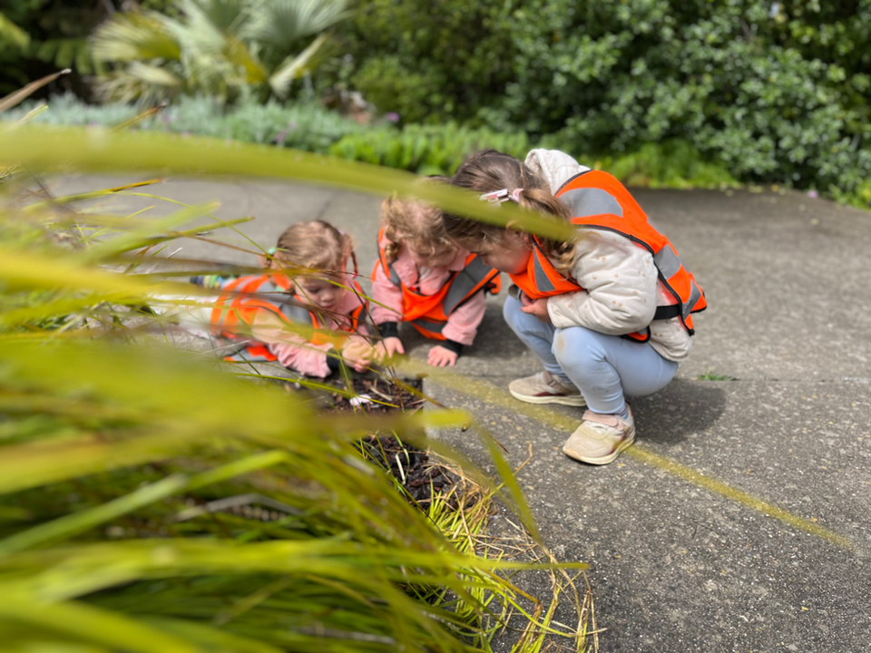 Children explore the outdoors through meaningful play, park adventures, and age-appropriate hiking activities.